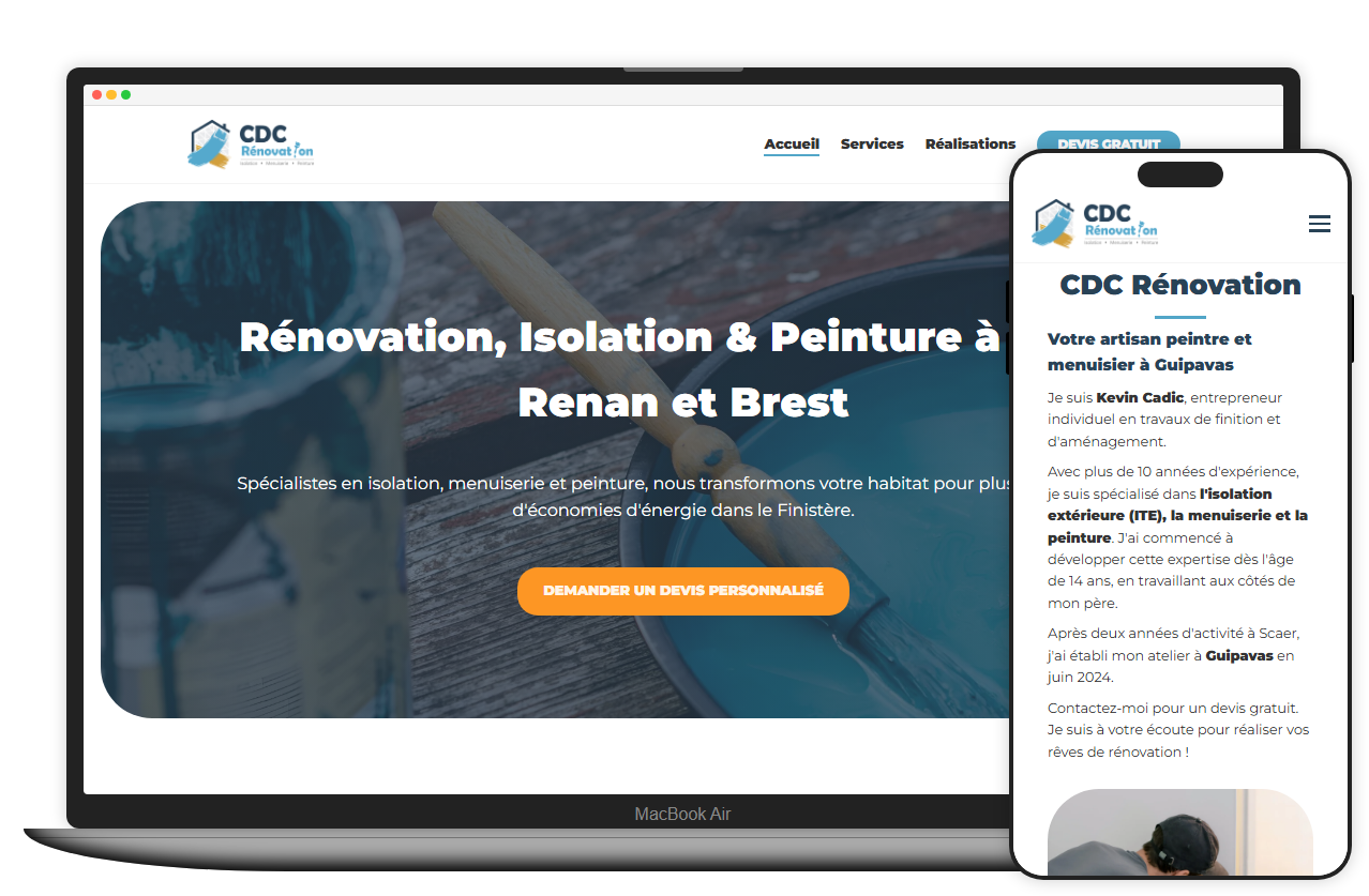 Conception et développement d'un site vitrine simple et efficace pour un artisan spécialisé dans la peinture et la rénovation.