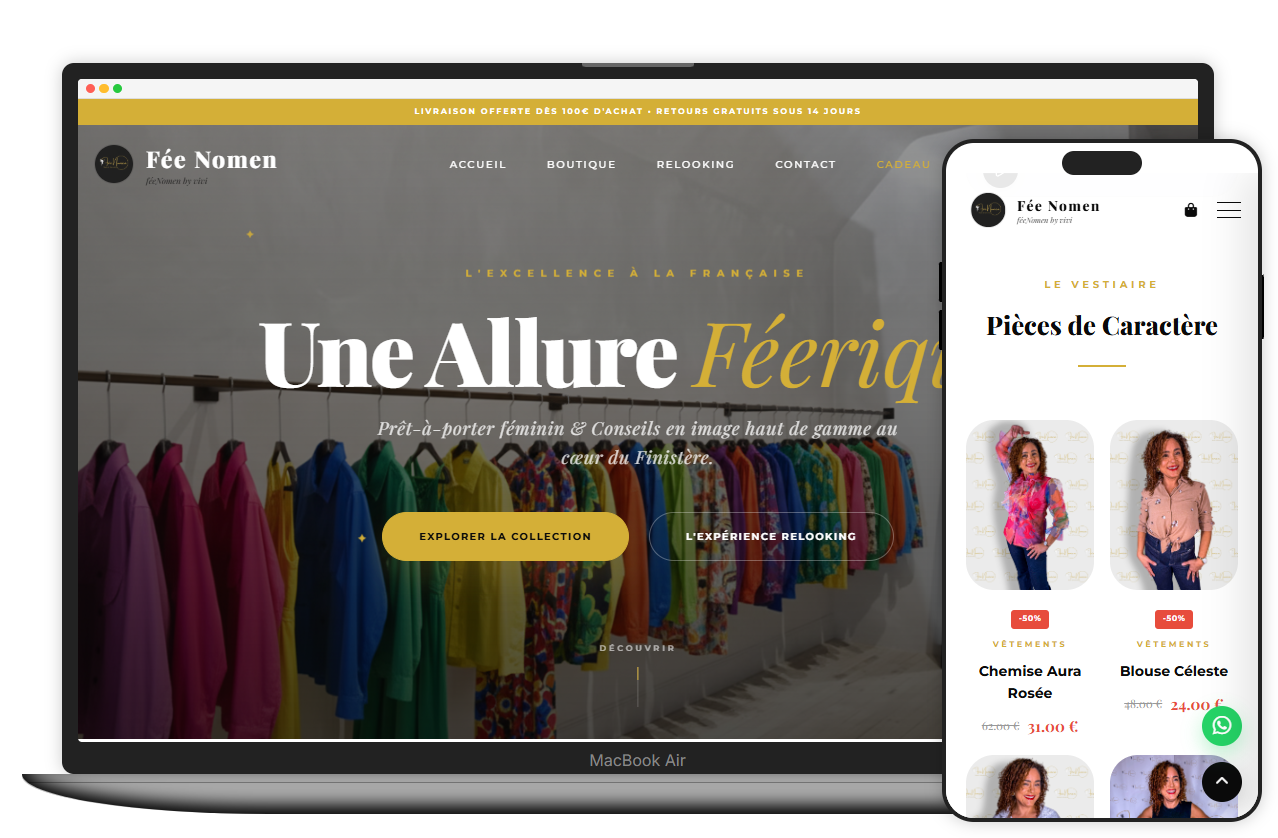 Conception et développement d'une boutique en ligne complète pour un magasin de prêt-à-porter féminin.
