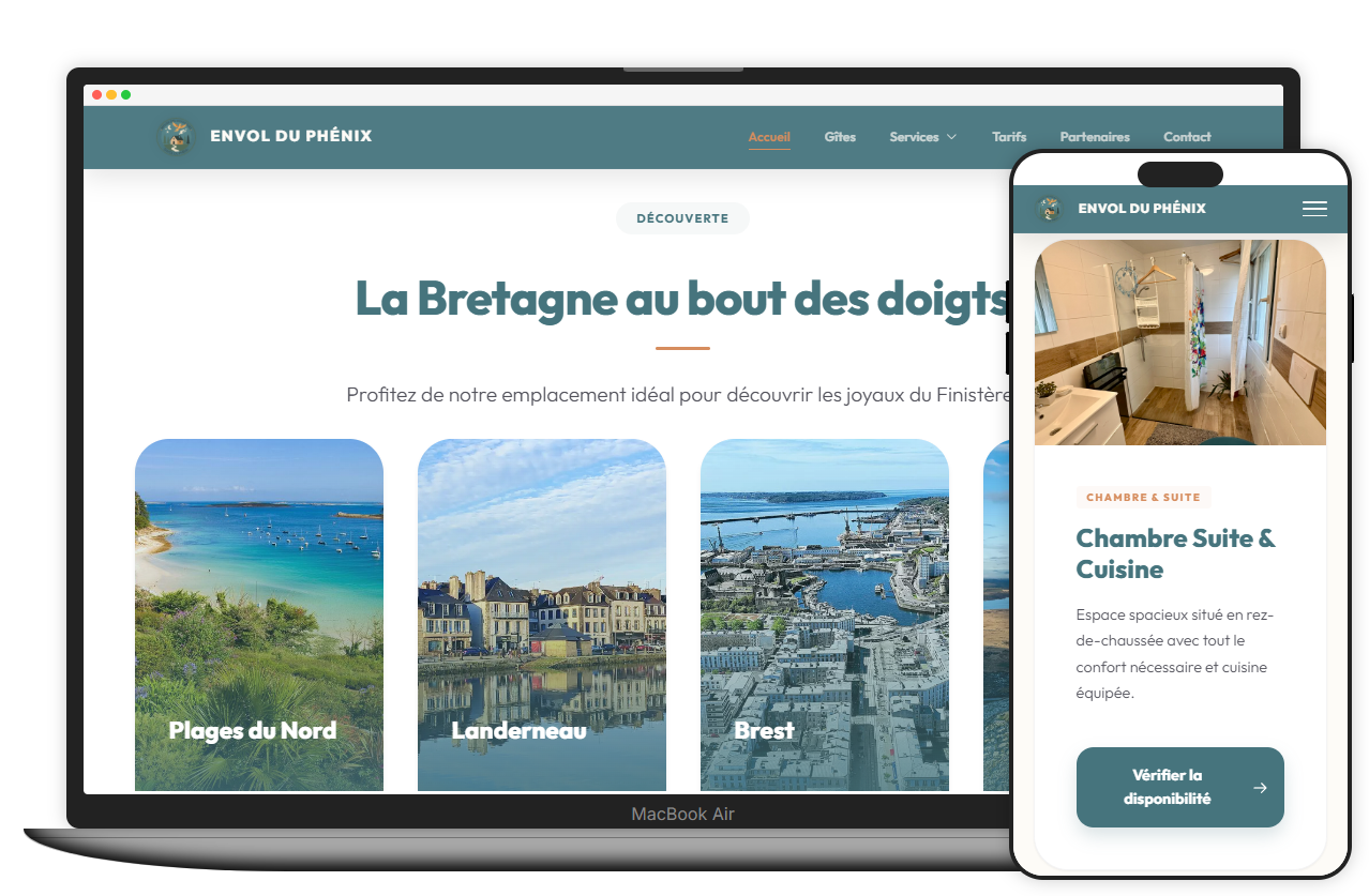 Conception et développement d'un site vitrine simple et efficace pour un gîte de vacances, avec un moteur de réservation et une synchronisation calendrier.